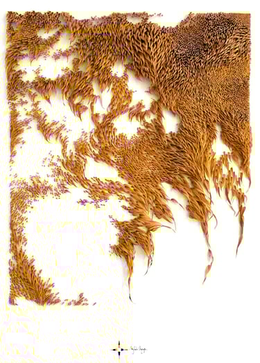 Inventer un mouvement qui suggère que des forces contradictoires peuvent parfois se rejoindre vers une destination commune. A la manière des courants d'eau vive qui meuvent les algues à marée descendante. A la manière de la vie de l'estran.