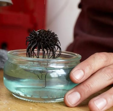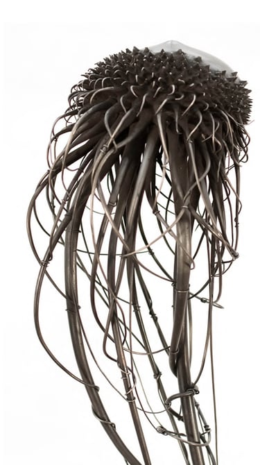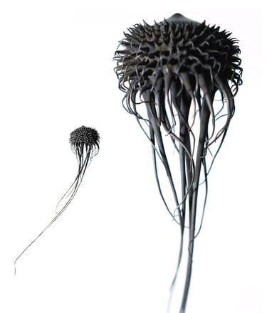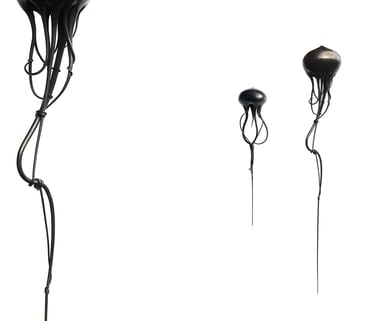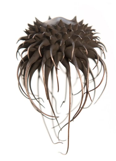 Collection de sculptures réalisée entre 2013 et 2018 qui fait appel à des techniques de tournage sur métaux cuivreux et de soudo-brasure de précision.