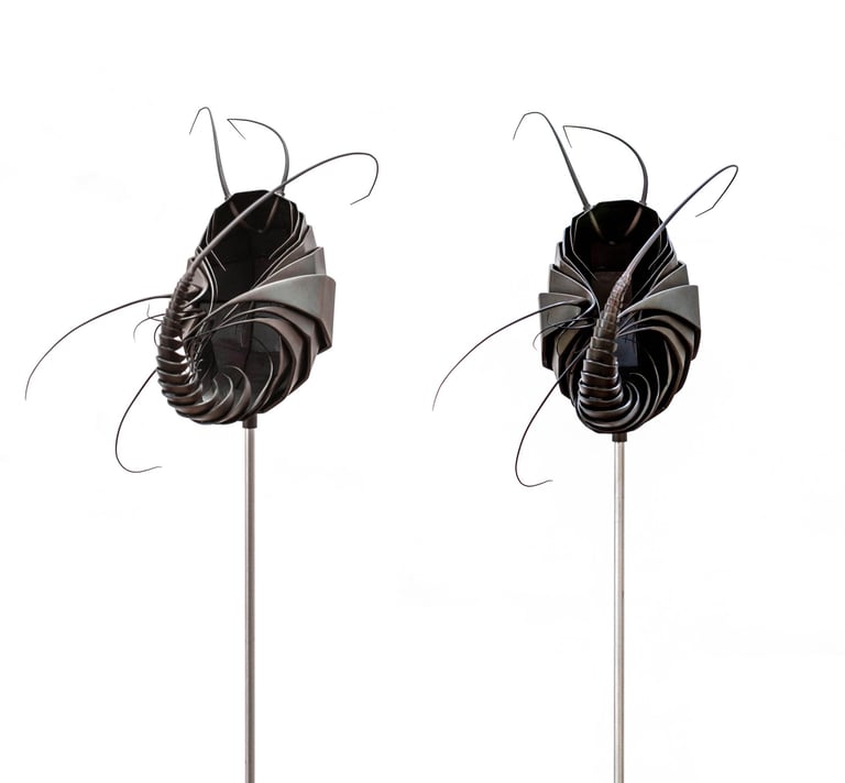 Il sont été conçus en CAO, puis fabriqués à l’atelier grâce à des techniques de tournage et soudo-brasure.
